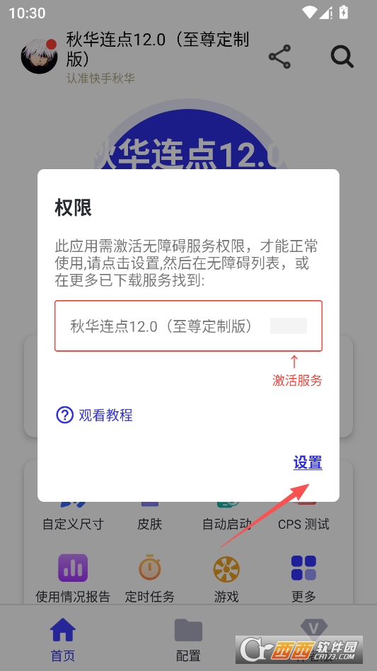 首次进入软件请先点击弹窗中的设置按钮