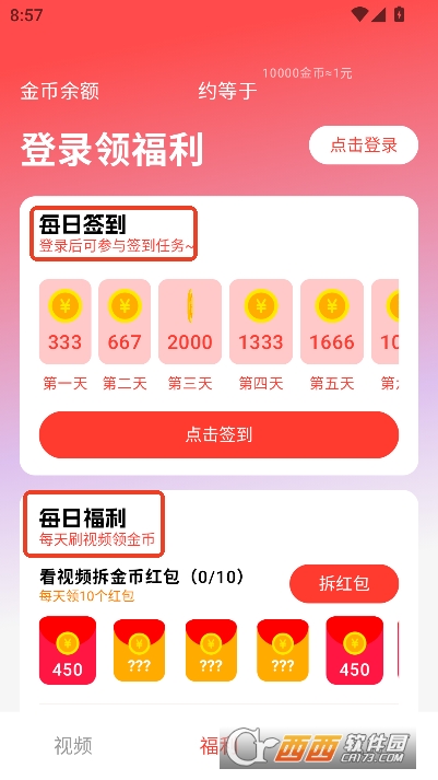 金币获取渠道主要有三类:每日登录后在“福利” 页面签到领金币,连续签到奖励递增;每天刷视频可解锁10个金币红包,观看时长越长奖励越多;参与邀请好友等任务能获得额外金币。提现支持支付宝和微信两种渠道,无手续费,10000金币约等于1元,满足提现条件后可快速将金币转换为现金到账。