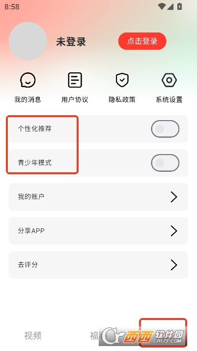4,个人中心提供个性化推荐与青少年保护模式开关