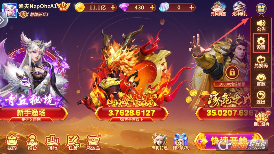 进入游戏主界面,点击右上角按钮呼出设置按钮