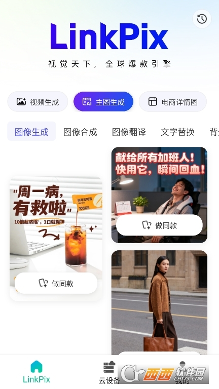青虎云LinkPix ai软件最新版是一款青虎ai智能体软件,提供专业的商务相关的ai生成器,支持图片生成、视频生成以及ai详情图,非常简单好用,提供专业且丰富的免费ai生成器,各种使用应有尽有,非常受欢迎,感兴趣的小伙伴们欢迎来下载试试吧。