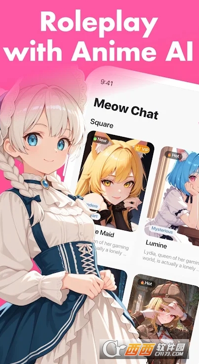 MeowAI中文解限版是一款以二次元形象角色为主题的AI对话互动软件,提供丰富的虚拟AI角色模型选择 ,每个角色都拥有独特的专属形象,性格特点,个性标签以及背景设定,点击喜欢的角色就能将其添加至角色库,支持超高自由度的实时对话,还能根据好感度解锁更多形象与剧情,支持创建专属自定义角色进行体验互动,为用户带来沉浸式的情感陪伴对话。