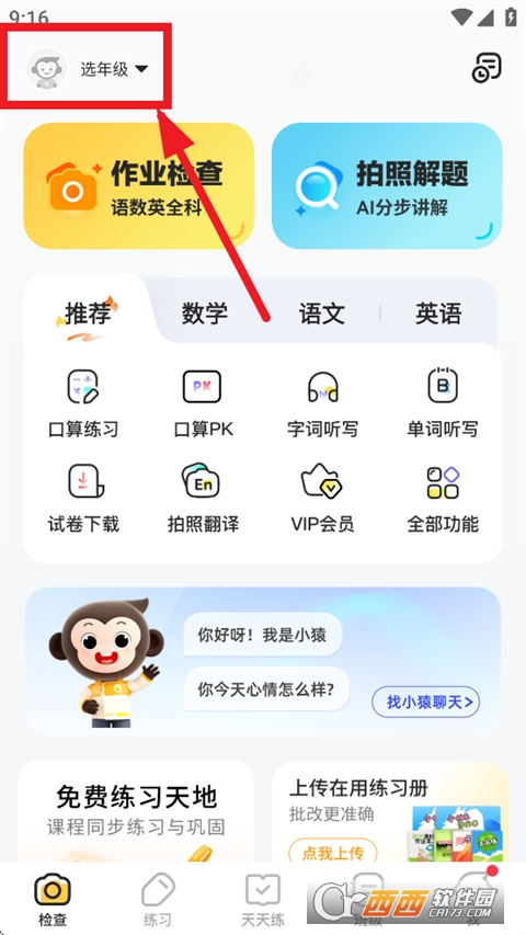 下载安装好软件之后进入主页点击左上角的选年级按钮