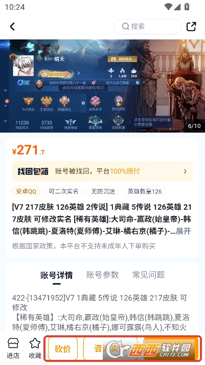 4,点击感兴趣的账号商品就能一键砍价咨询与购买