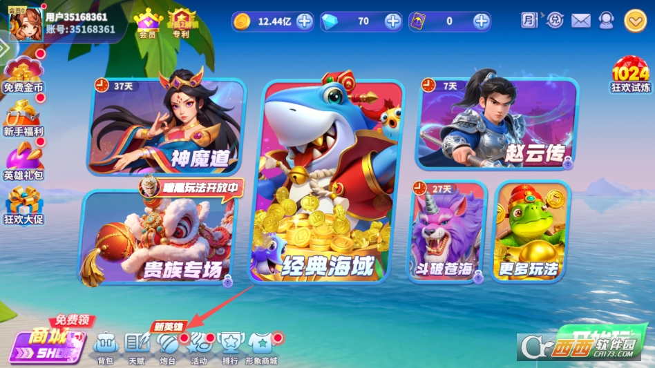进入游戏后点击主界面下方炮台选项