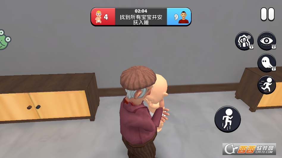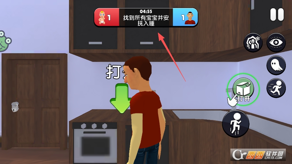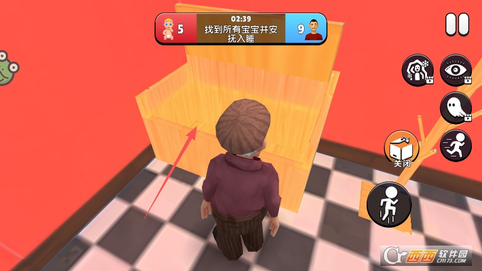 如果你扮演的是大人,则需要仔细寻找房间中的各种角落来找到宝宝