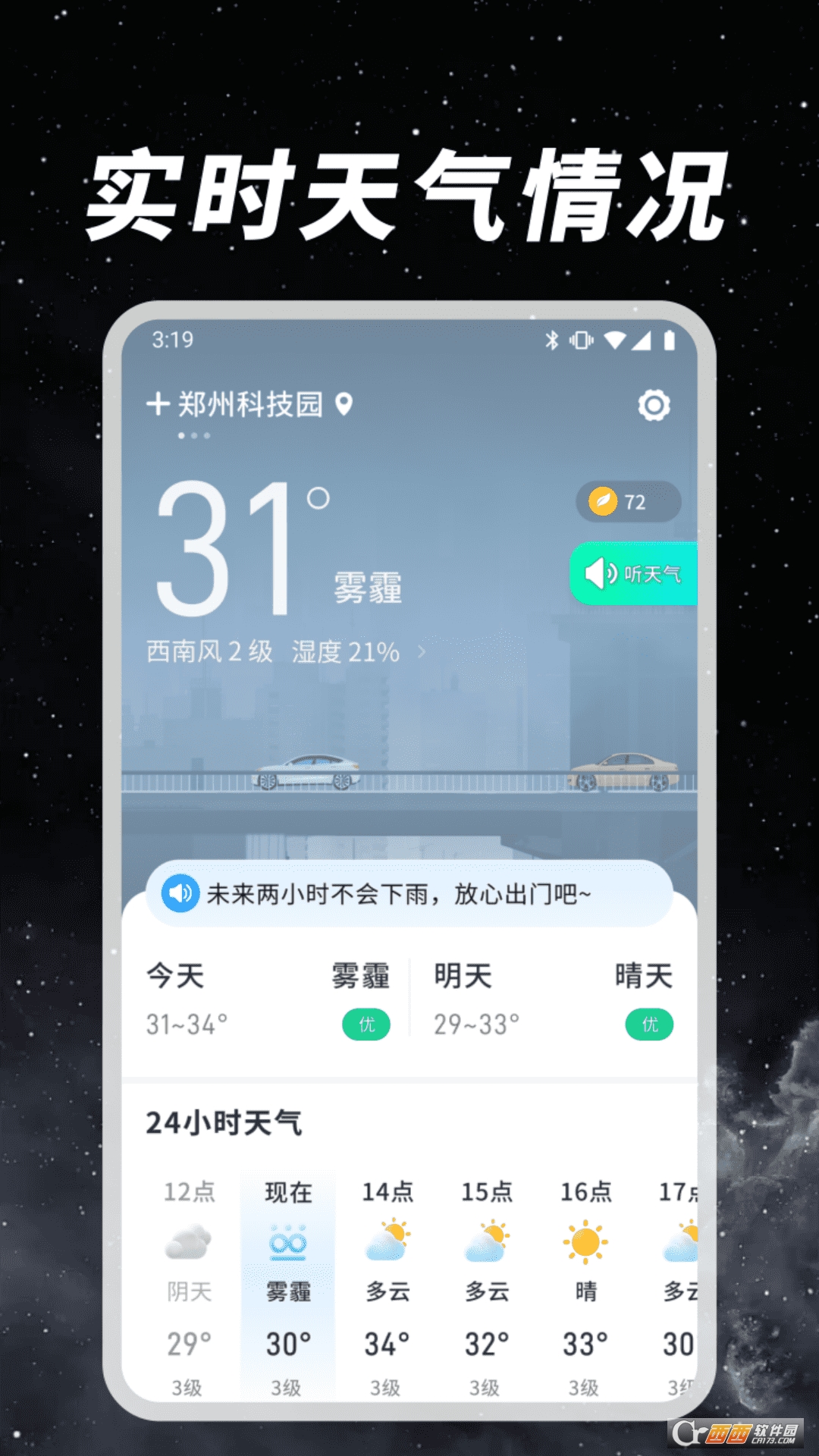 未来24小时逐时预报和15天趋势都能语音解读,细节拉满。