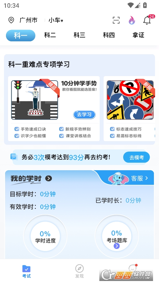 支持学习计时功能,能满足监管有效学时要求,计时过程中会自动拍照验证,完成学时后可直接对接考试预约。