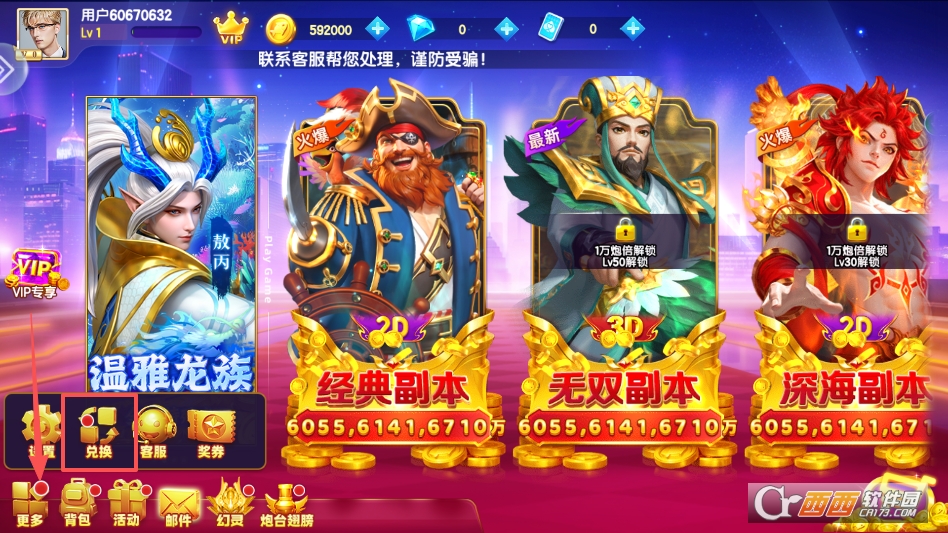 点击游戏主界面左下角更多按钮,在呼出菜单中点击兑换选项