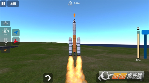 6、正式开始后点击右下角的按钮可以点燃不同的推进器,右边的蓝色按钮是调整推进器的功率大小。