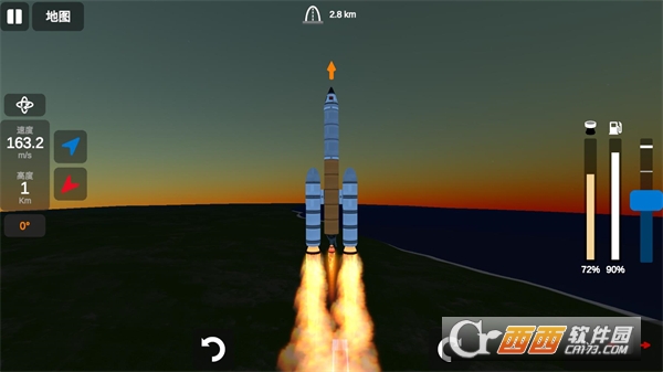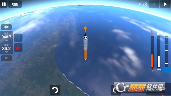 可视化数据监控与姿态调整:发射后实时监控火箭速度、高度、燃料剩余等数据,通过屏幕交互调整火箭姿态——按住外圈移动可改变箭身朝向,借助地图视图查看预计轨道(蓝色线),通过远拱点(A)、近拱点(P)参数优化飞行轨迹,确保任务顺利推进。