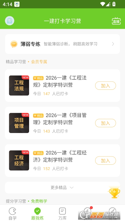 像工程类的一建、二建、造价师、安全工程师,医学类的护师、药师、医师,金融类的银行从业、证券从业,还有会计职称、自考等热门项目,平台上都有对应的专属备考内容。不用再下载多个软件切换,一个万题库就能搞定所有备考需求。