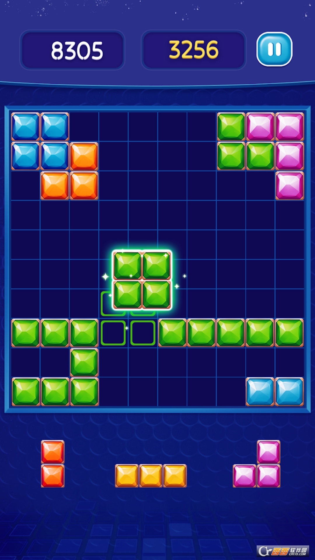 基础玩法就是拖动方块到棋盘指定区域,自由调整摆放位置,努力让方块填满横向的一整行。只要一行被完全填满,这一行的方块就会立即消失,同时获得相应的分数。