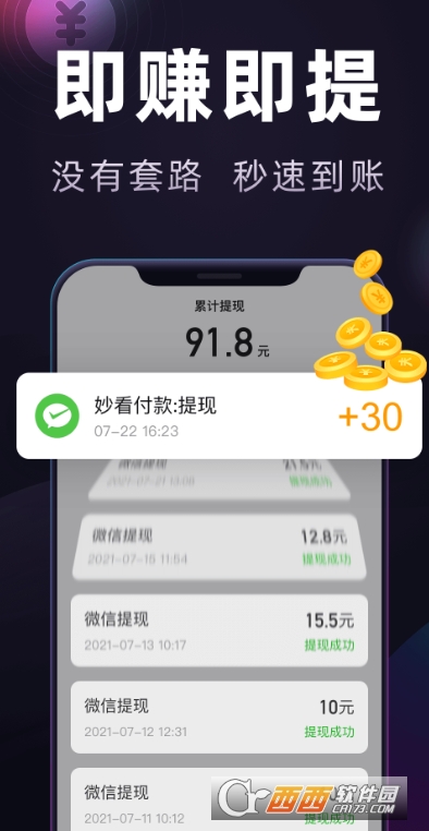 提现零门槛秒到账:无最低提现额度限制,用户可随时提现,资金即时到账,操作便捷无套路。提现流程仅需几步即可完成,无需等待审核,支持微信等常用渠道收款,避免繁琐手续,让用户的收益及时落袋为安。