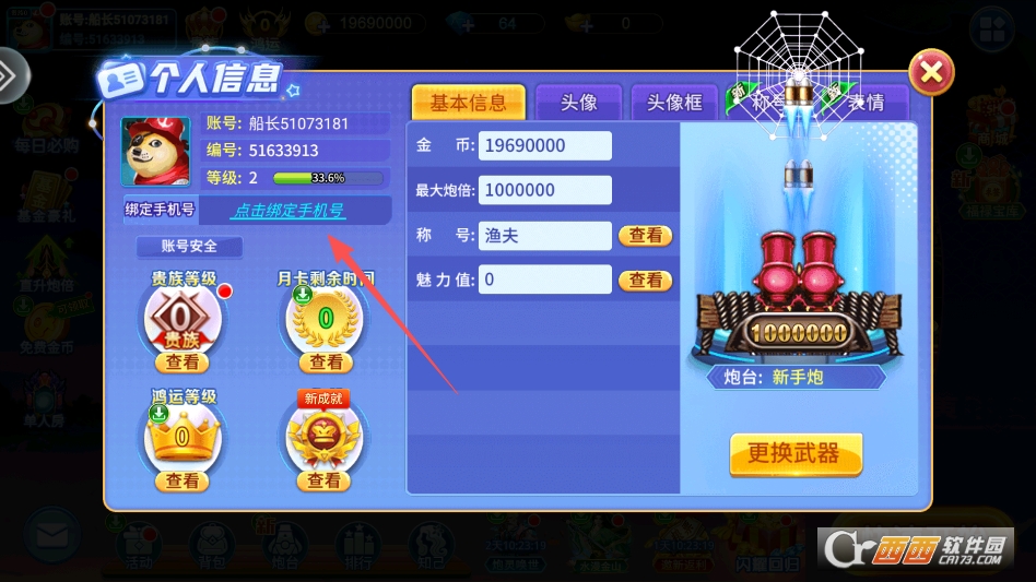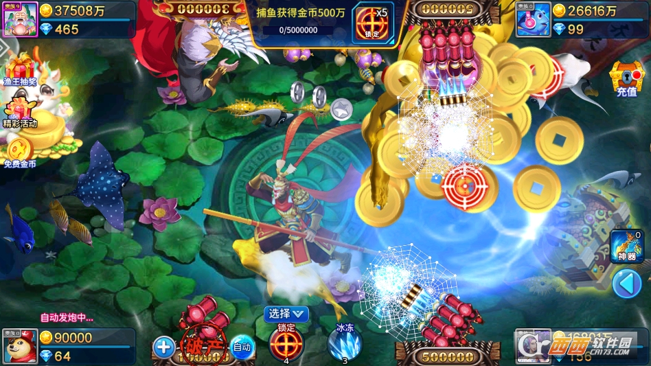 2. 炮台升级与皮肤更换,用捕鱼获得的金币升级炮台等级,等级越高炮弹威力越大,捕获大鱼的概率也越高。还能解锁各种酷炫的炮台皮肤,打造专属的个性化炮台。