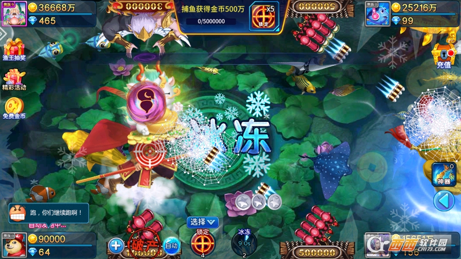 1. 经典捕鱼玩法,滑动屏幕调整炮台角度,点击屏幕发射炮弹捕捉游过的鱼群。不同鱼类的分值不同,捕获高分大鱼就能获得更多金币,越玩越有动力。