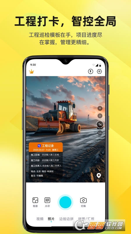 1. 真实水印自动添加功能,拍照时会自动抓取当前的精确时间和地理位置,生成不可修改的水印。水印位置可以自由调整,字体和样式也有多种选择,满足不同用户的审美需求。