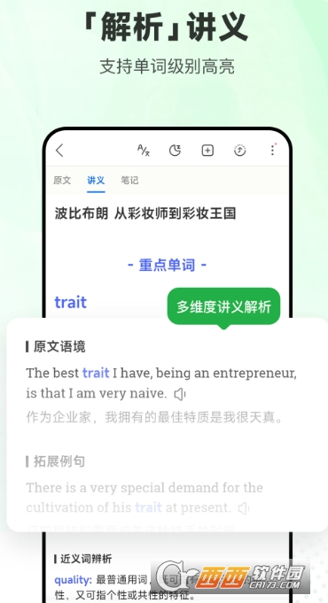其核心优势在于将听力训练与词汇积累、口语提升深度融合:多级精听系统支持8档语速调节与灵活循环设置,搭配单词级高亮同步文本,精准攻克听力难点;跟读打分功能实时反馈发音准确度,助力听 - 说联动提升;与欧路词典无缝集成的生词管理,实现长按即查、自动收藏,打造听 - 查 - 记闭环学习。
