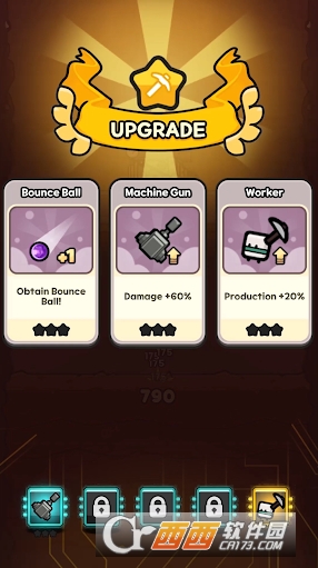 2、机器两侧的小人会自动采矿来获得经验,提升等级后可以获得卡牌提升能力。