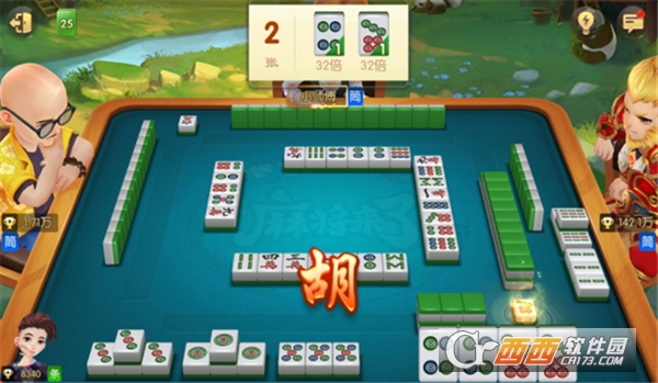 现在,第一张胡牌已经出现,玩家可看到界面显示的番数为32倍。如此,我们便完成了一轮清一色加对对碰的胡牌局,所带来的惊喜感绝不亚于电影剧情。