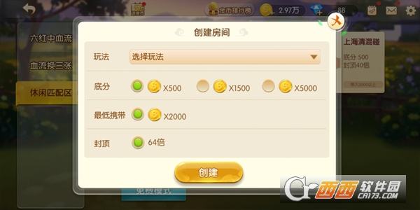 2、选择玩法及底分后即可创建成功,创建成功后就可以邀请好友一起玩耍了!