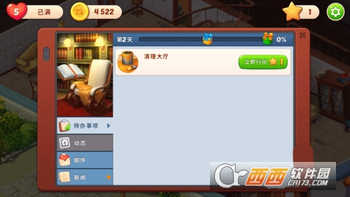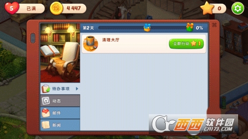 5、成功过关之后,就会获得任务所需要的星星了,同时还有过关奖励的一些金币,这个时候就可以回去完成更换家中物品的任务了。