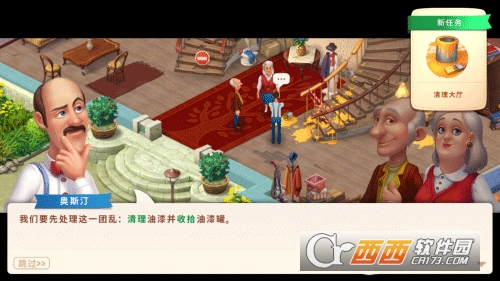 剧情驱动的区域解锁:围绕管家奥斯汀阻止父母出售童年老宅的主线,玩家需逐步解锁宅邸不同区域(门厅、橘园、车库等)。每个区域解锁需完成对应消除关卡与装修任务,同时触发家族回忆、邻里互动等剧情,提升沉浸感。
