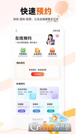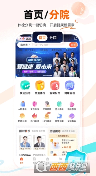 爱康体检宝app最新版手机客户端是一款专注健康体检生活管理的线上服务平台,支持在线自助预约体检服务,根据关注的健康需求快速定制体检方案,提供海量体检医院选择,覆盖全国37座城市150多加分院。还能通过软件快速查询体检报告,挂号问诊,为用户提供一站式高效快捷的健康服务。