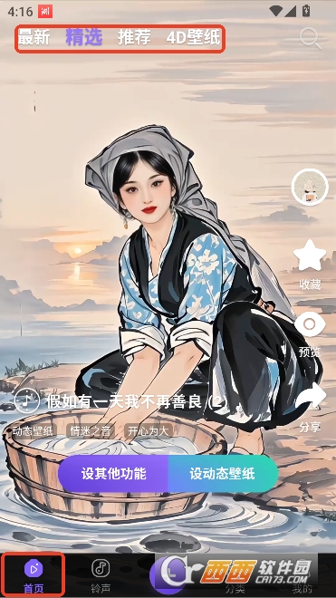 1、进入主界面可以上下滑动选择喜欢的视频,点击下方设置其他功能或者直接设为来电秀。
