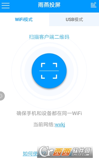 2、保证wifi网络相连的情况下,用户就可以通过扫描客户端上的二维码连接投屏。想要保证信号稳定的话,还可以尝试借助USB线进行连接投屏。