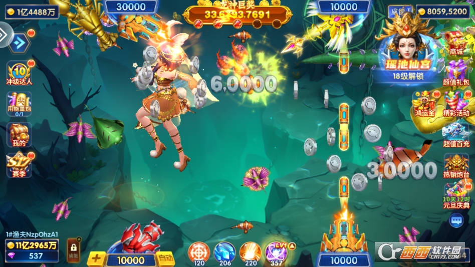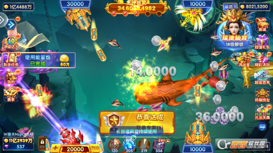 游戏的经典捕鱼模式是最受欢迎的部分。玩家可以选择不同的炮台和炮弹进行捕鱼。每种鱼类都有不同的分值,特殊鱼类还能触发额外奖励。