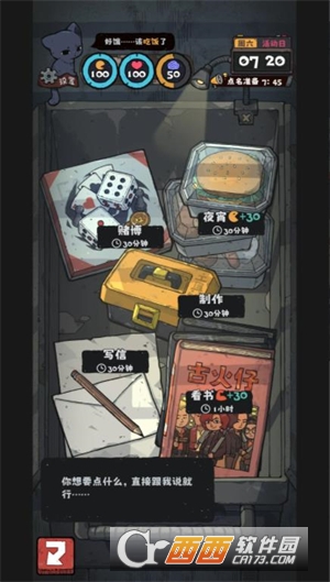 5、屏幕下方的三个状态代表了角色的健康状况,前往食堂可以通过抽卡来获取不同的食物恢复健康。