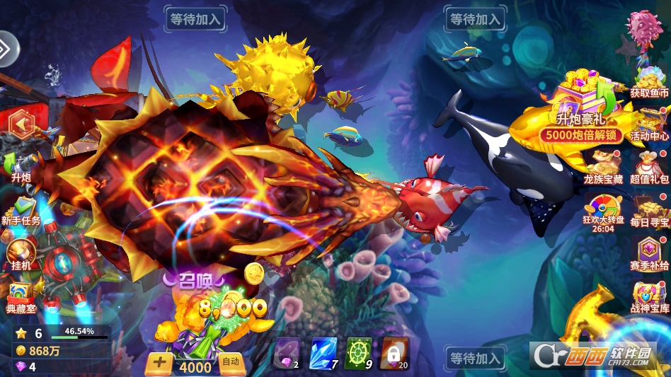 3. 丰富活动赛事,福利拿到手软。每日都会推出签到、捕鱼达人、闯关挑战等活动,完成活动任务就能领取大量金币、高级炮台碎片和专属道具。定期举办全服捕鱼赛事,玩家参与赛事比拼,根据捕鱼分数排名获得丰厚奖励,既能享受竞技乐趣,又能收获超多福利。