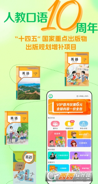 人教口语app是一款由人教数字出版有限公司官方出品,专为3岁以上中小学生量身打造的专业英语学习软件。软件以人教版教材为核心根基,精准同步1-9年级多版本英语教材,从小学基础入门到高中进阶提升无缝衔接,为学生提供权威、系统的听说学习解决方案。