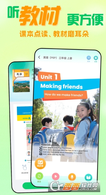全学段教材覆盖:支持 1-9 年级 PEP、新起点、精通等多版本人教版教材,从小学到高中无缝衔接,整合点读、连读、复读功能,即点即读简单易学,完美适配不同学段学生的教材学习需求。