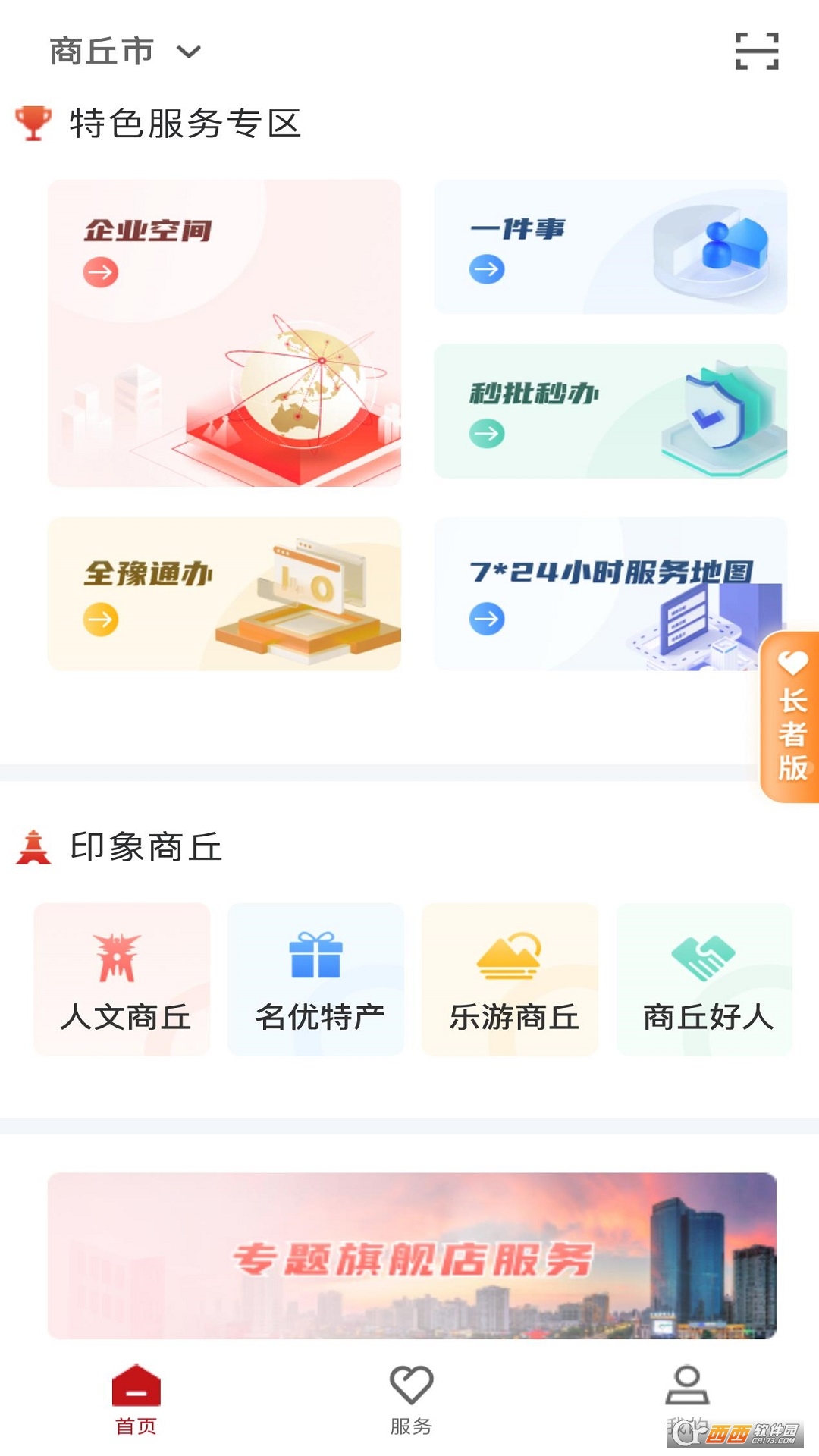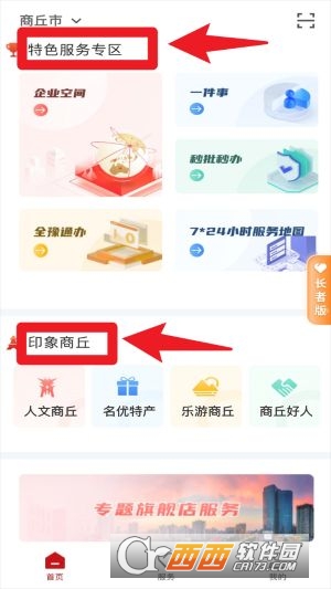 2、特色服务专区中提供企业空间、一件事、全豫通办等应用,同时印象商丘模块展示本地人文、特产、旅游和好人事迹。