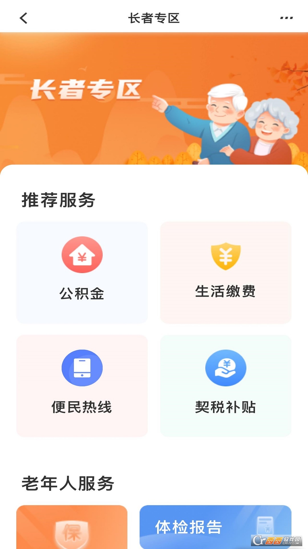 4、长者专区提供公积金、生活缴费、便民热线和契税补贴等推荐服务,并配套老年人专属体检报告和健康相关服务。