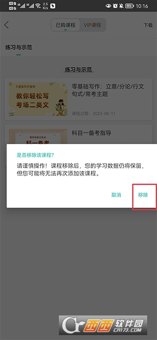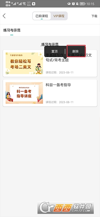 二、在你要删除的课程上长按后会显示出置顶/删除,点击删除。