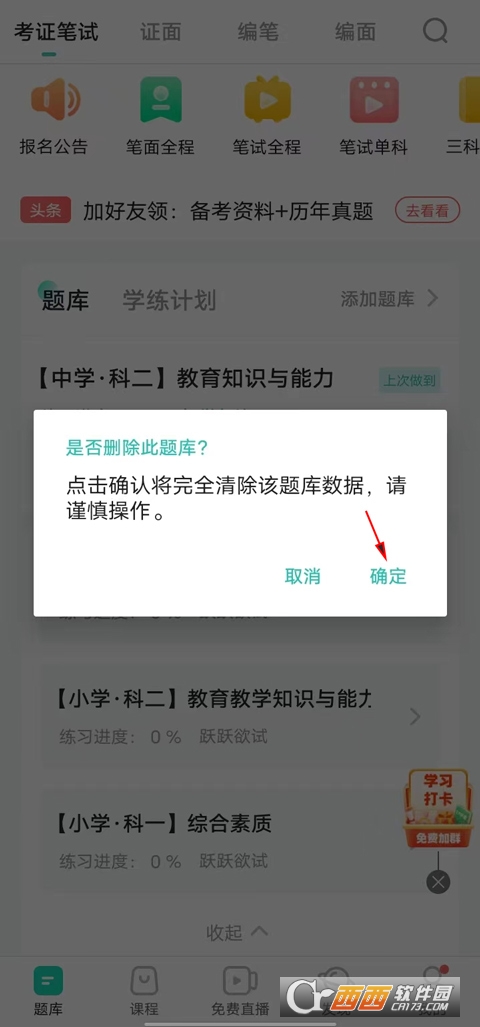 4、接下来进入题库刷题时,刷题记录就是清空了的。