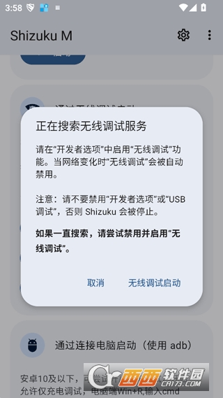 1、安卓10以上系统可以打开无线调试功能,然后输入配对码即可连接,其与Shizuku的激活使用一样