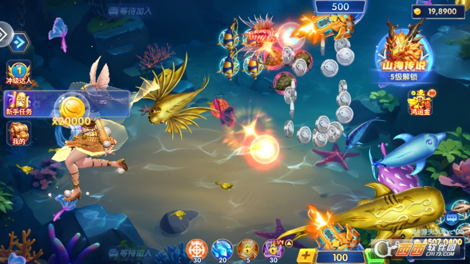 4. 丰富道具助力捕鱼。内置冰冻全场、锁定目标、激光穿透等多种强力道具。冰冻道具能让鱼群短暂静止,锁定道具可精准追踪高价值鱼群,激光道具则能穿透多个目标,合理使用道具能大幅提升捕鱼效率,轻松应对各种复杂场景。