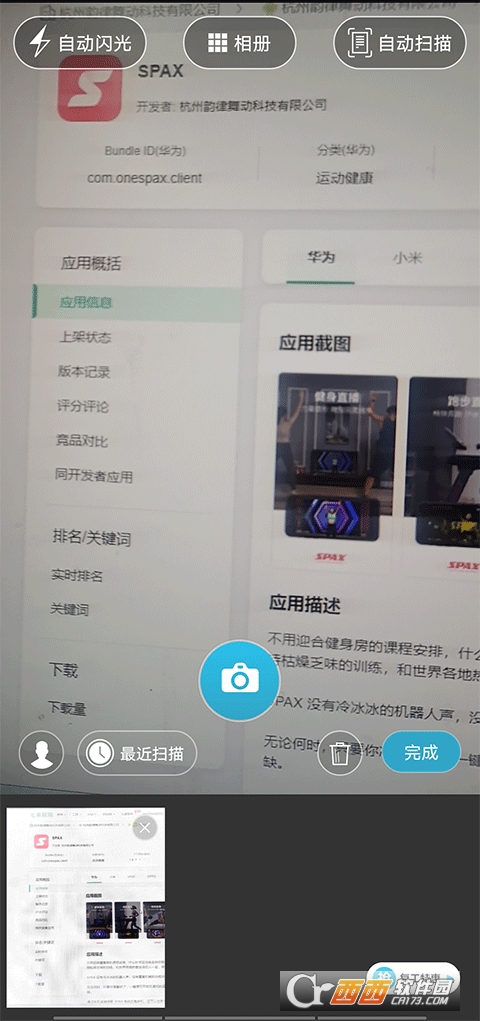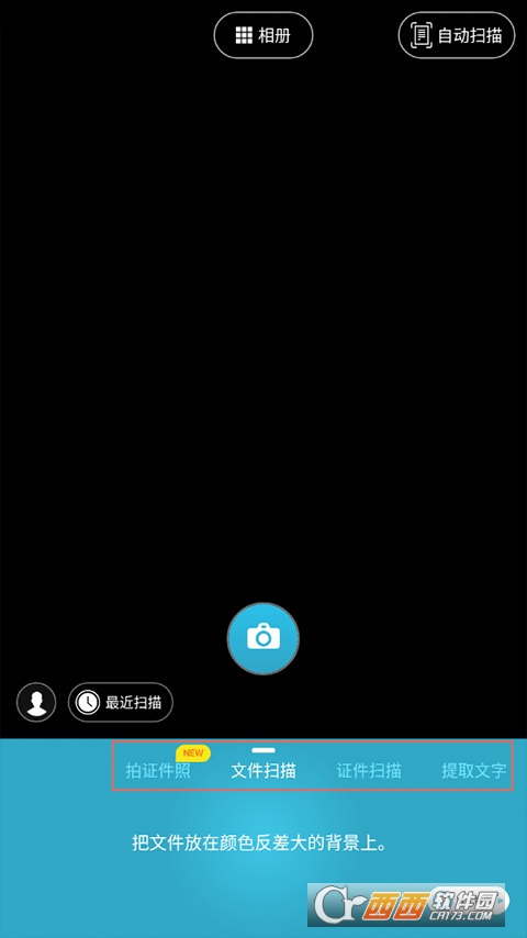 以文件扫描为例子,将手机对准文件然后点击中间拍摄图标即可扫描,扫描成功后会在下方出现扫描图像。