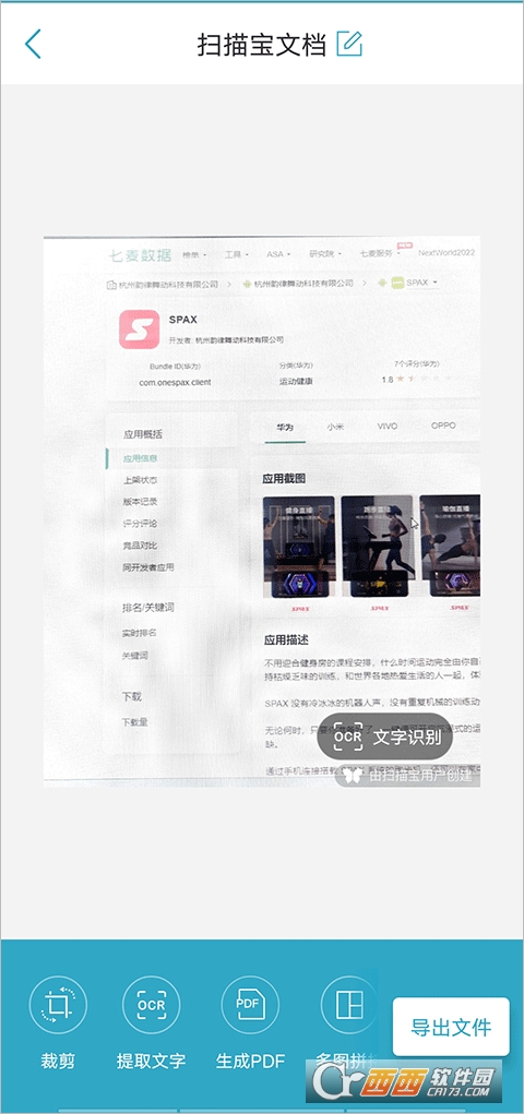 想要在扫描宝app中去除水印,那么你可以在扫描文档结束后,点击下方“导出文件”。