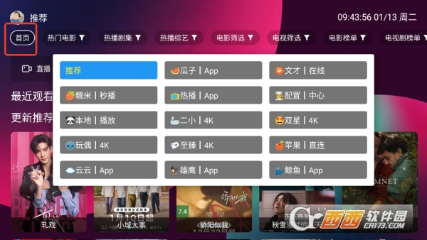 1,点击左上角首页可切换多个播放数据源