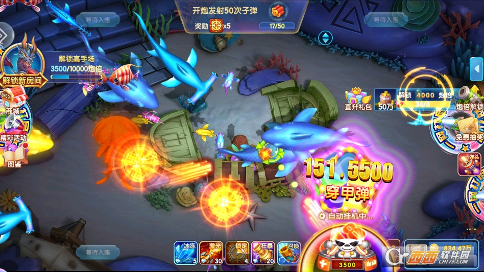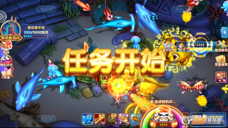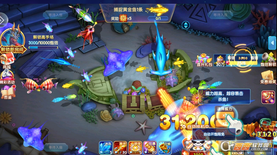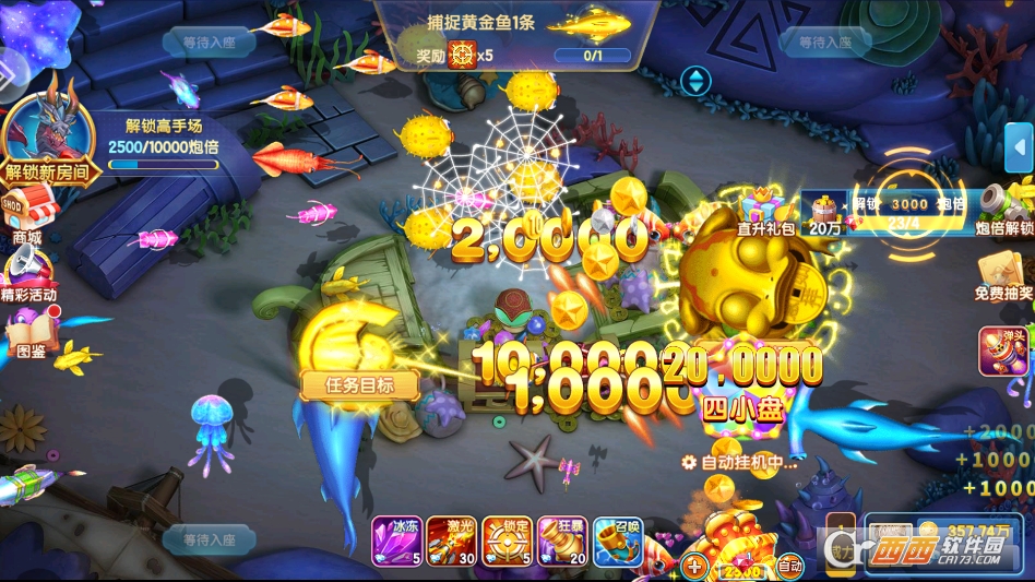 1. 自由捕鱼模式。这是最基础的模式,适合新手熟悉玩法或玩家休闲放松。玩家可自由选择不同等级的渔场进入,没有时间限制和任务压力,想玩就玩、想停就停,可根据自己的节奏操控炮台捕获鱼群,积累金币和游戏经验。