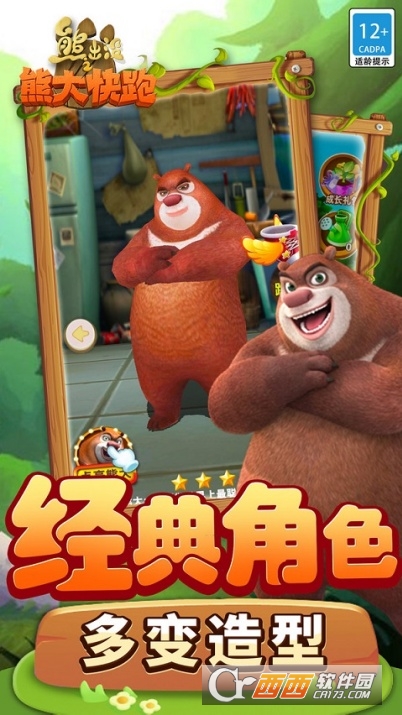 动画 IP 高度还原:基于《熊出没》官方授权改编,100% 还原熊大、熊二、光头强等原版角色形象与配音,复刻森林、蘑菇阵、神秘古镇等经典场景,搭配高清 3D 画质与动感音效,还原动画氛围感。