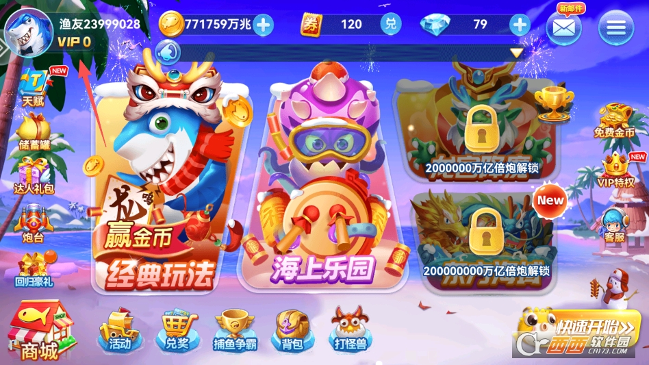 人人捕鱼贵宾厅版135M0人在玩人人捕鱼是一款和传统捕鱼游戏截然不同的休闲手游,最大的特色就是推出了专属的福利返利版本。这个版本在保留经典捕鱼乐趣的基础上,把福利力度拉满,上线就能感