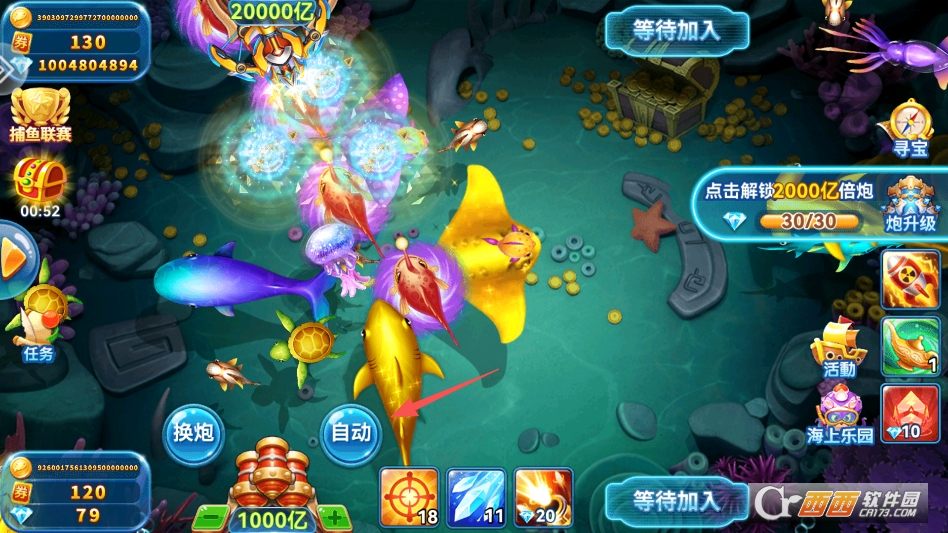 我们在渔场中,点击自己炮台右侧的自动按钮就可以自动开炮
