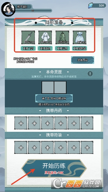 1,出发前选择装备与道具