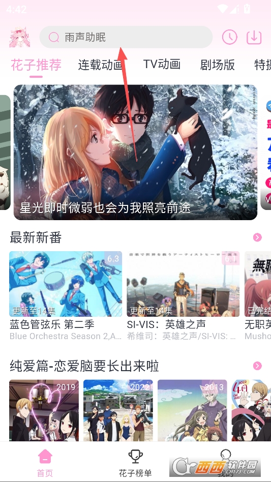 进入软件,在主页上方搜索框输入关键词查找想看的动漫
